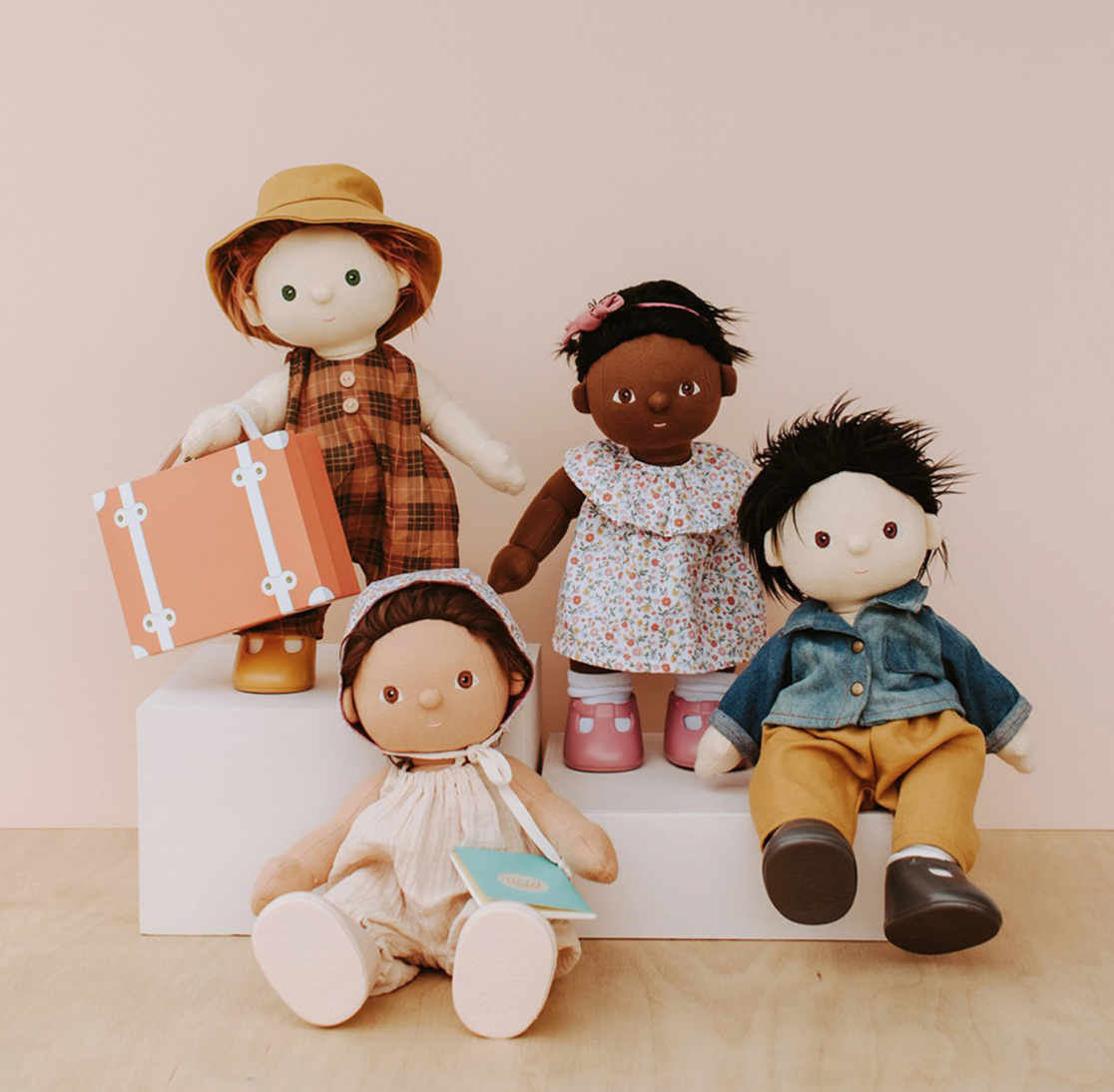 As malas Travel Togs são uma miniatura da See-Ya e revelam uma bela surpresa. Lá dentro encontras uma linda roupinha, acessórios, sapatos e um passaporte com autocolantes. Tudo pronto para levares a tua Dinkum Doll de férias.