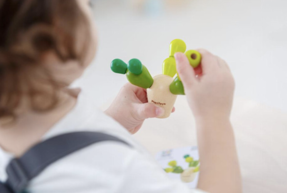 Este Cacto é um Jogo de Equilíbrio da Plan Toys, que para além de um excelente design e cores divertidas, se torna uma verdadeira brincadeira familiar. Começa-se pela base de madeira do cacto e, em seguida vai-se tentando equilibrar o cacto, usando as diferentes peças que compõem os seus ramos.