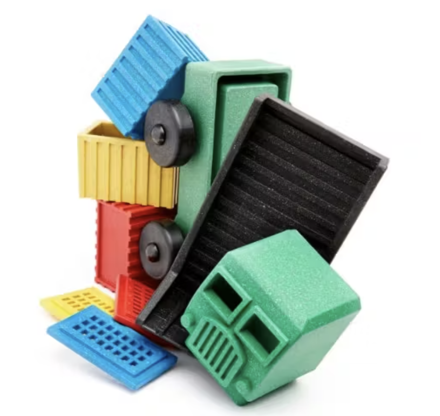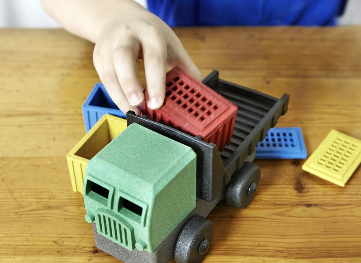 Três caixas para colocar coisas dentro! O que poderia ser melhor? Nosso caminhão de carga é um quebra-cabeça de 9 peças (com todas aquelas caixas) que recompensa a criança com um caminhão de carga funcionando.