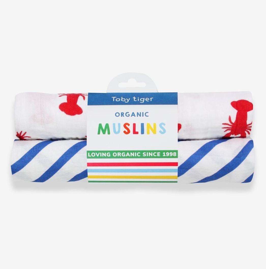 Musselina de algodão orgânico Crab/Blue stripes Toby Tiger
