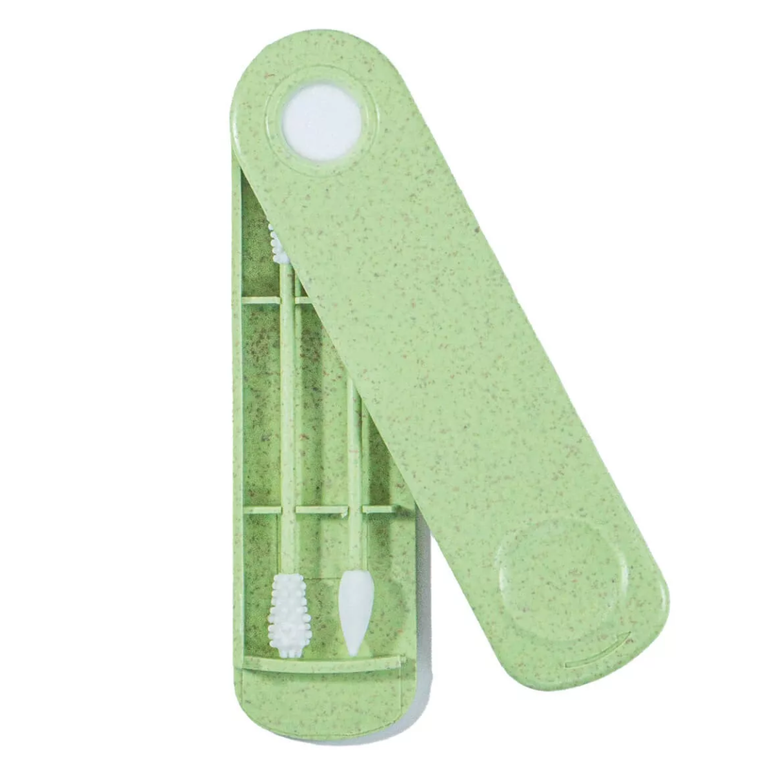 A alternativa amiga do ambiente pode ser higienicamente armazenada na elegante caixa feita de amido de trigo para a manter a salvo da sujidade. Isto torna o conjunto um companheiro perfeito para viagens de negócios ou férias.