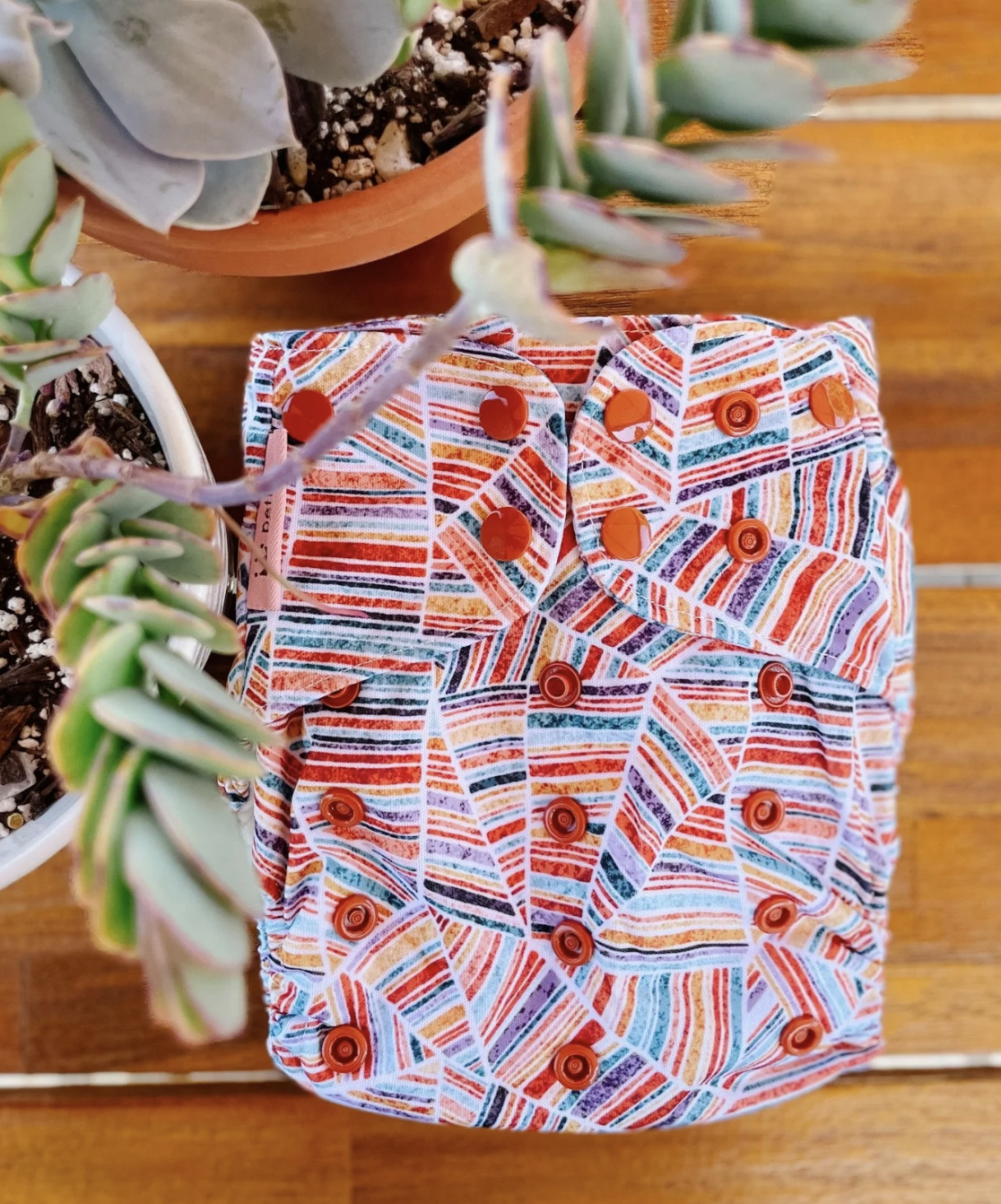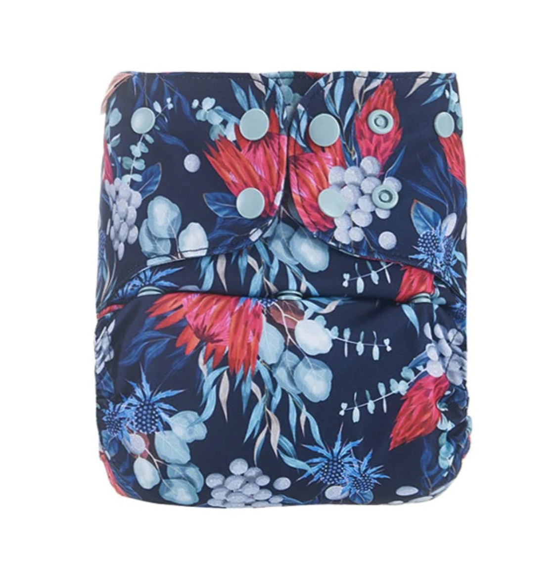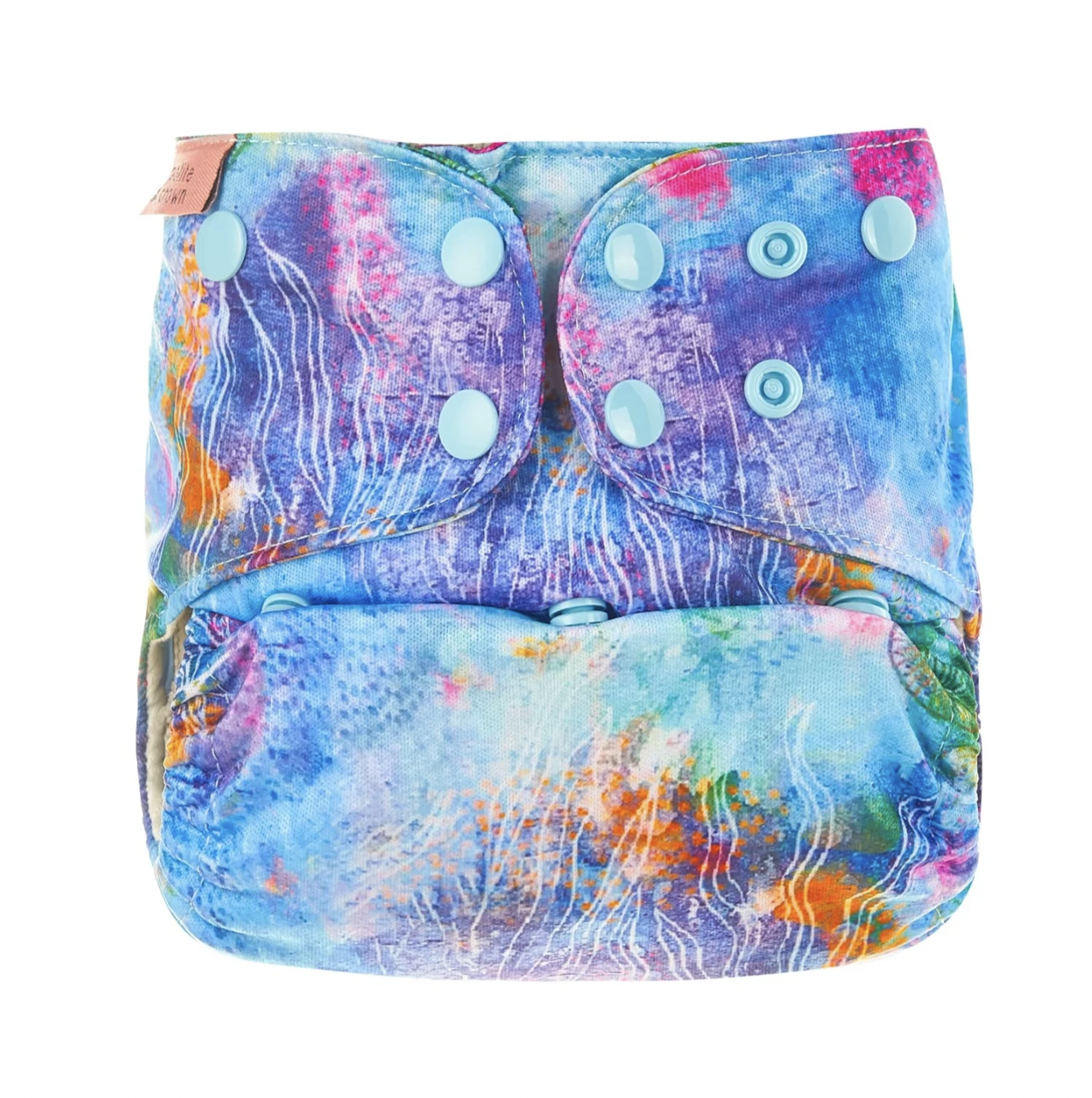 Forrado com uma camada de algodão de bambu que fornece uma camada adicional de absorção (9 camadas no total) - estes absorventes apertam à fralda com molas;