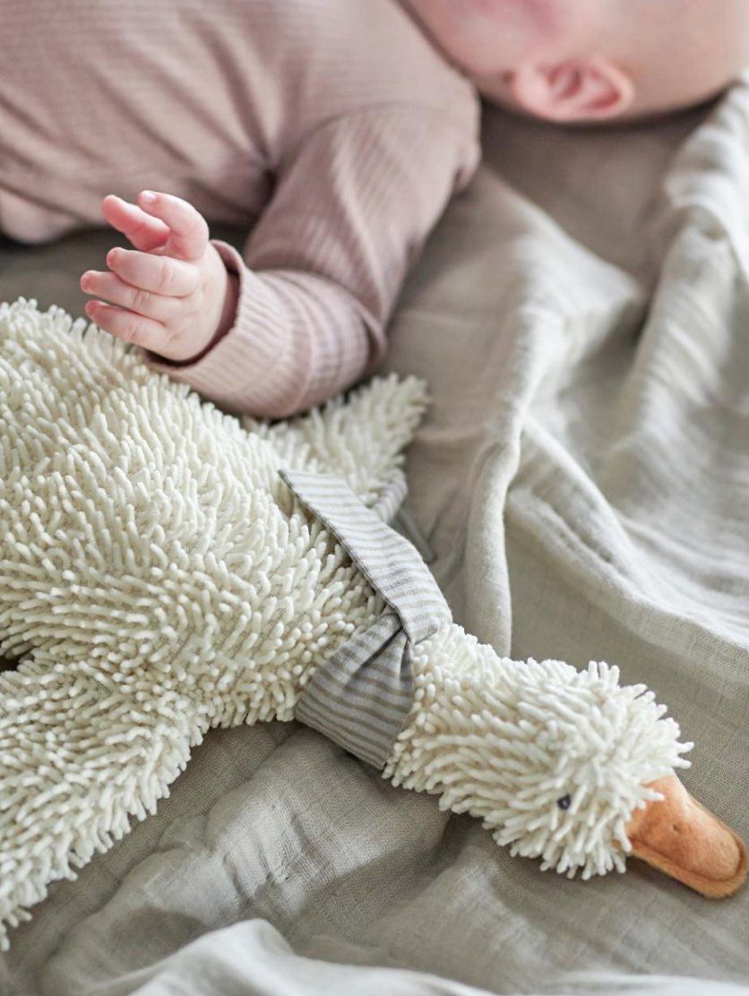 Tão macio e fofinho, este ganso é o companheiro da soneca perfeita.