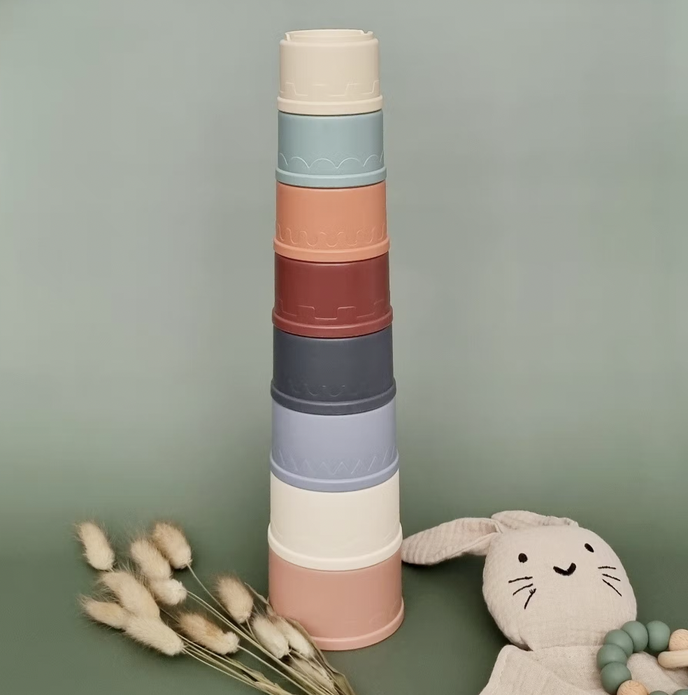 Torre Rundetårn de copos empilháveis em silicone Rammelaartje