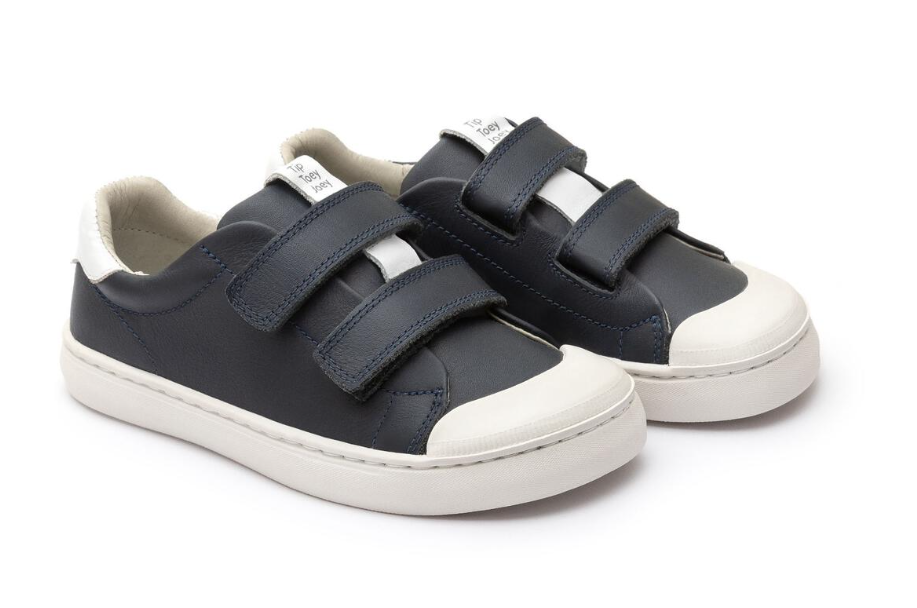Calçado respeitador para o pé da criança da marca brasileira Tip Toey Joey. Tem dois velcros que permitem um melhor ajuste a todo o tipo de pés, incluindo pés largos. O seu design é único e distingue-se pela forma "FreetoGrow", com ponteira ampla para acompanhar a anatomia do pé e deixar os dedinhos livres.