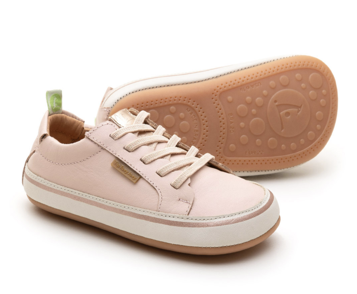 Calçado respeitador para o pé da criança da marca brasileira Tip Toey Joey. Tem dois velcros que garantem o melhor ajuste ao pezinho. O seu design é único e distingue-se pela forma "FreetoGrow", com ponteira ampla para acompanhar a anatomia do pé e deixar os dedinhos livres.