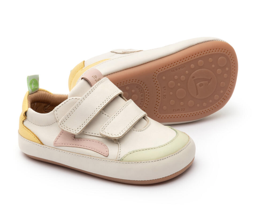 Calçado respeitador para o pé da criança da marca brasileira Tip Toey Joey. Tem dois velcros que garantem o melhor ajuste ao pezinho. O seu design é único e distingue-se pela forma "FreetoGrow", com ponteira ampla para acompanhar a anatomia do pé e deixar os dedinhos livres.